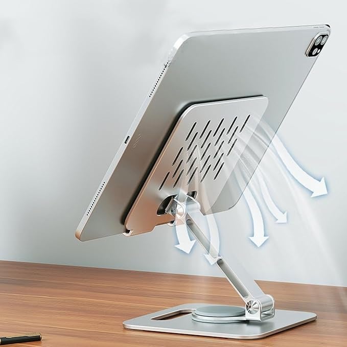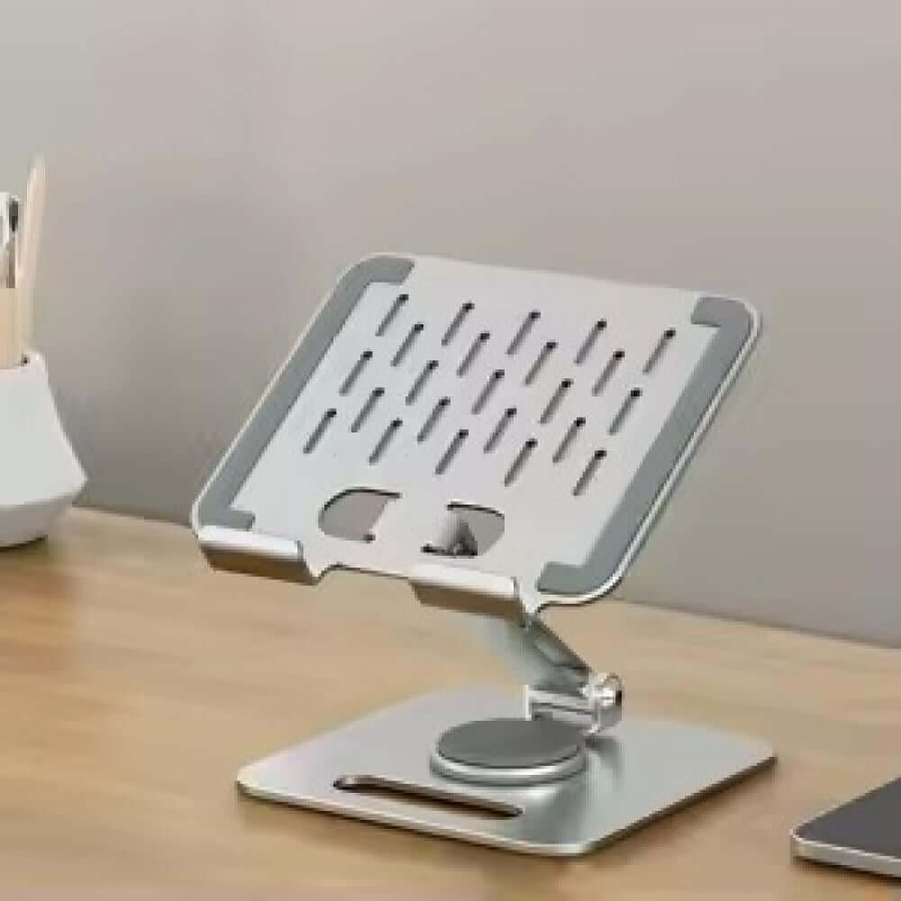 حامل تابلت/جوال مكتبي من الألومنيوم – قابل للدوران 360° والطي – فضي