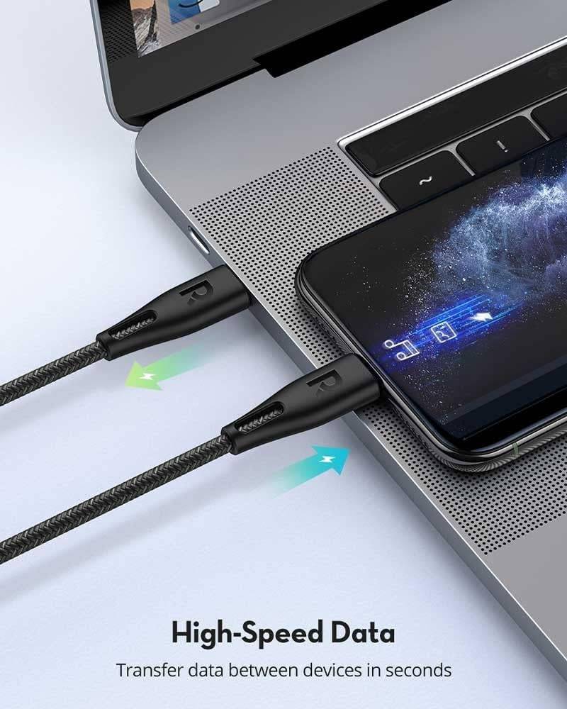 سلك تايب سي إلى لايتننق من راف باور يدوم 12 مرة أطول من الاسلاك الأخرى وثبت أنه يتحمل أكثر من 100,000 انحناء في اختبارات معملية صارمة ، يسمح لك سلك تايب سي إلى لايتننق بشحن جهاز الايفون الخاص بك بسرعة باستخدام شاحن توصيل الطاقة المتوافق بأقصى سرعات ممكنة