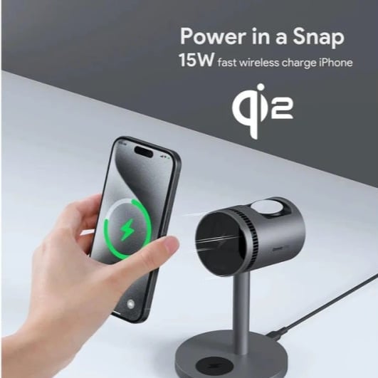 - شحن لاسلكي سريع حتى 15 واط – متوافق مع أجهزة iPhone وAndroid عبر تقنية Qi.