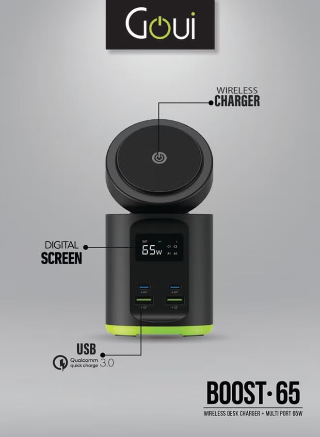 شاحن مكتبي لاسلكي Boost 65 متعدد المنافذ بقوة 65 واط