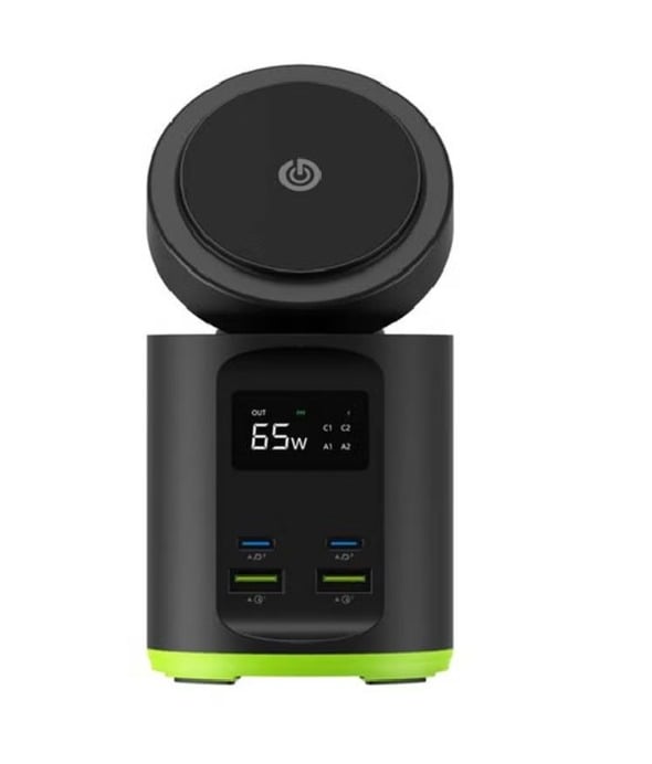 حل شحن شامل يجمع بين الشحن السلكي واللاسلكي لتوفير طاقة سريعة وآمنة لمختلف أجهزتك في المنزل أو المكتب أو أثناء التنقل. يدعم الشحن عبر منفذي USB-C، ومنفذي USB-A، بالإضافة إلى شحن لاسلكي Qi بقدرة 15 واط مع توافق كامل مع تقنية MagSafe.