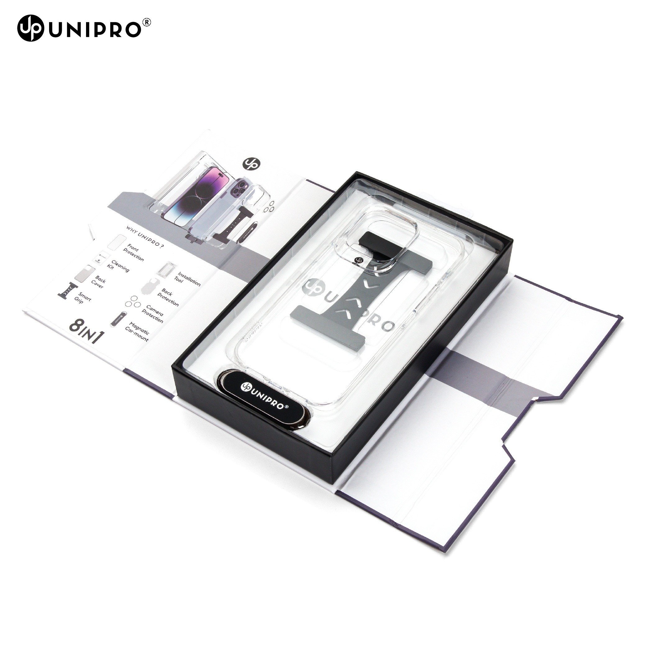 يوني برو UniPro® يقدم ثماني منتجات حماية مختلفة في باقة واحدة، تحمي جهازك من كل الزوايا.