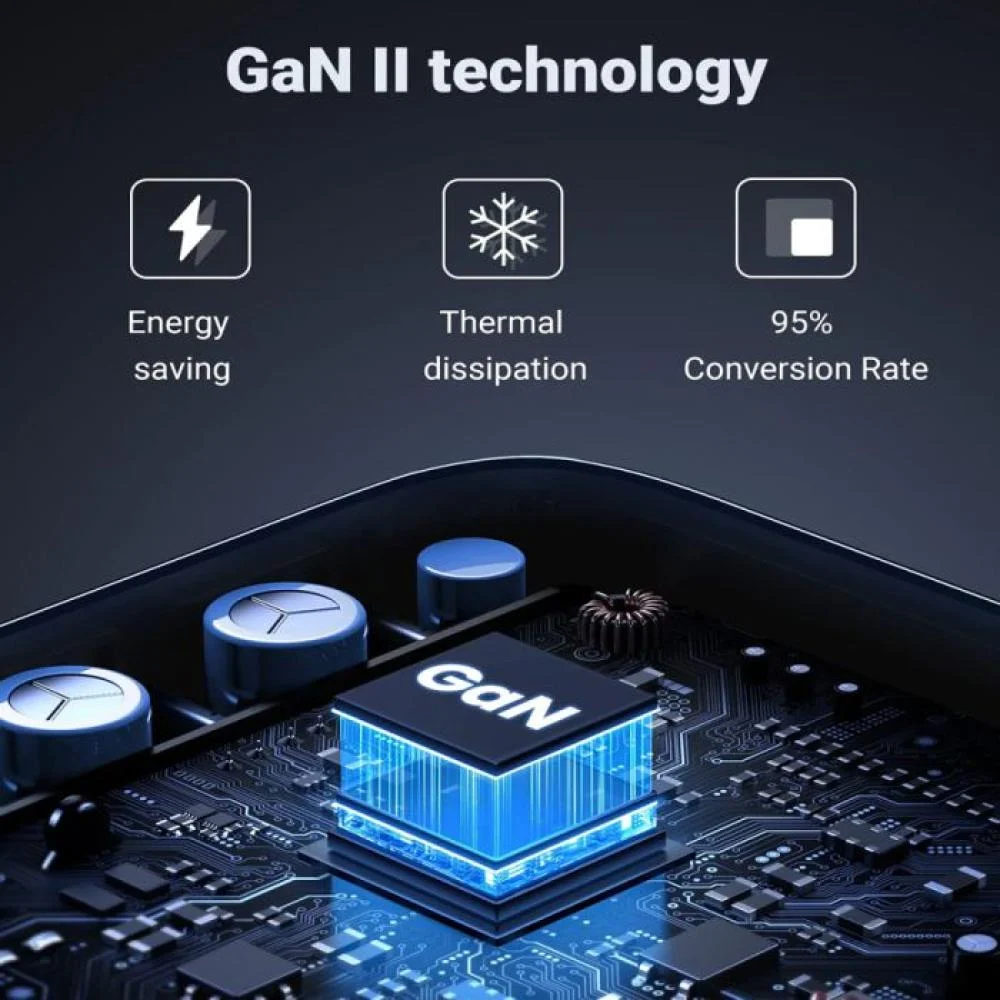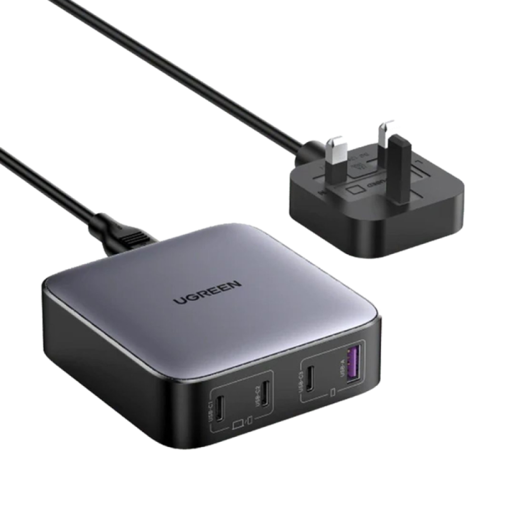 - يحتوي على 3 منافذ USB-C ومنفذ USB-A، يتيح شحن الهواتف، الأجهزة اللوحية، وأجهزة الكمبيوتر المحمولة بسهولة في وقت واحد.