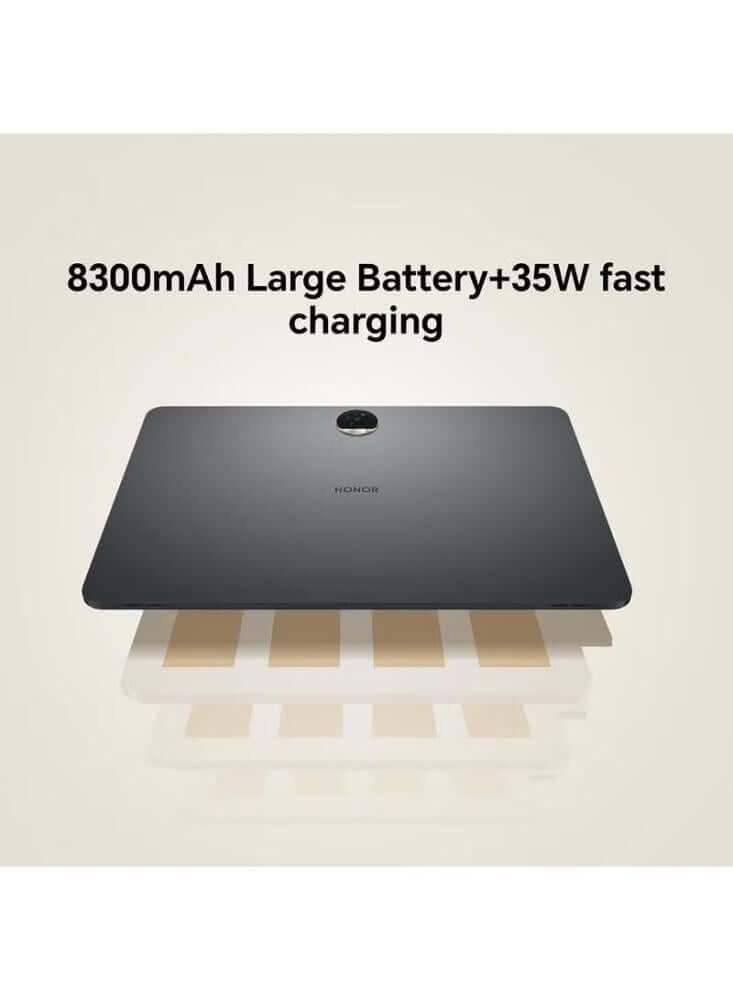 جهاز لوحي موجّه للترفيه والإنتاجية بشاشة كبيرة 12.1 بوصة بمعدل تحديث 120 هرتز وحماية للعين، وصوت غامر عبر 8 مكبرات. يقدم أداءً قويًا بمعالج Snapdragon 6 Gen 1 وتقنية HONOR RAM Turbo التي توسّع الذاكرة عمليًا إلى 16 جيجابايت. بطارية 8300 ملّي أمبير مع شحن سريع 35 واط تمنحك تشغيلًا يدوم طوال اليوم.