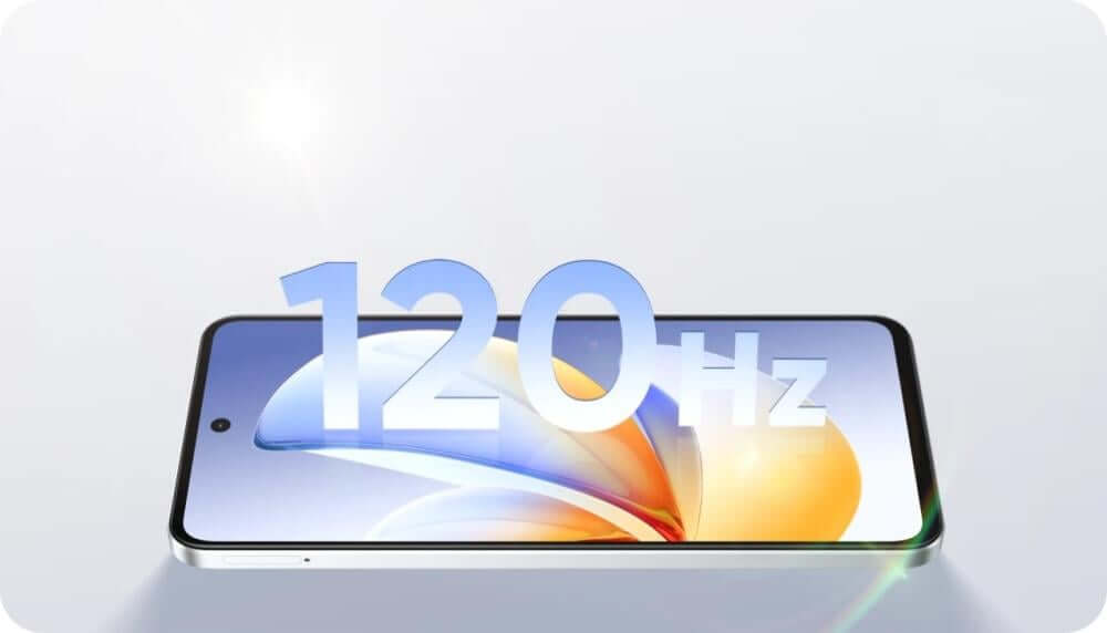 - شاشة IPS LCD بحجم 6.67 بوصة، بدقة +HD، تدعم معدل تحديث 120 هرتز وسطوع يصل حتى 725 شمعة، مع استحواذ 86% من واجهة الجهاز