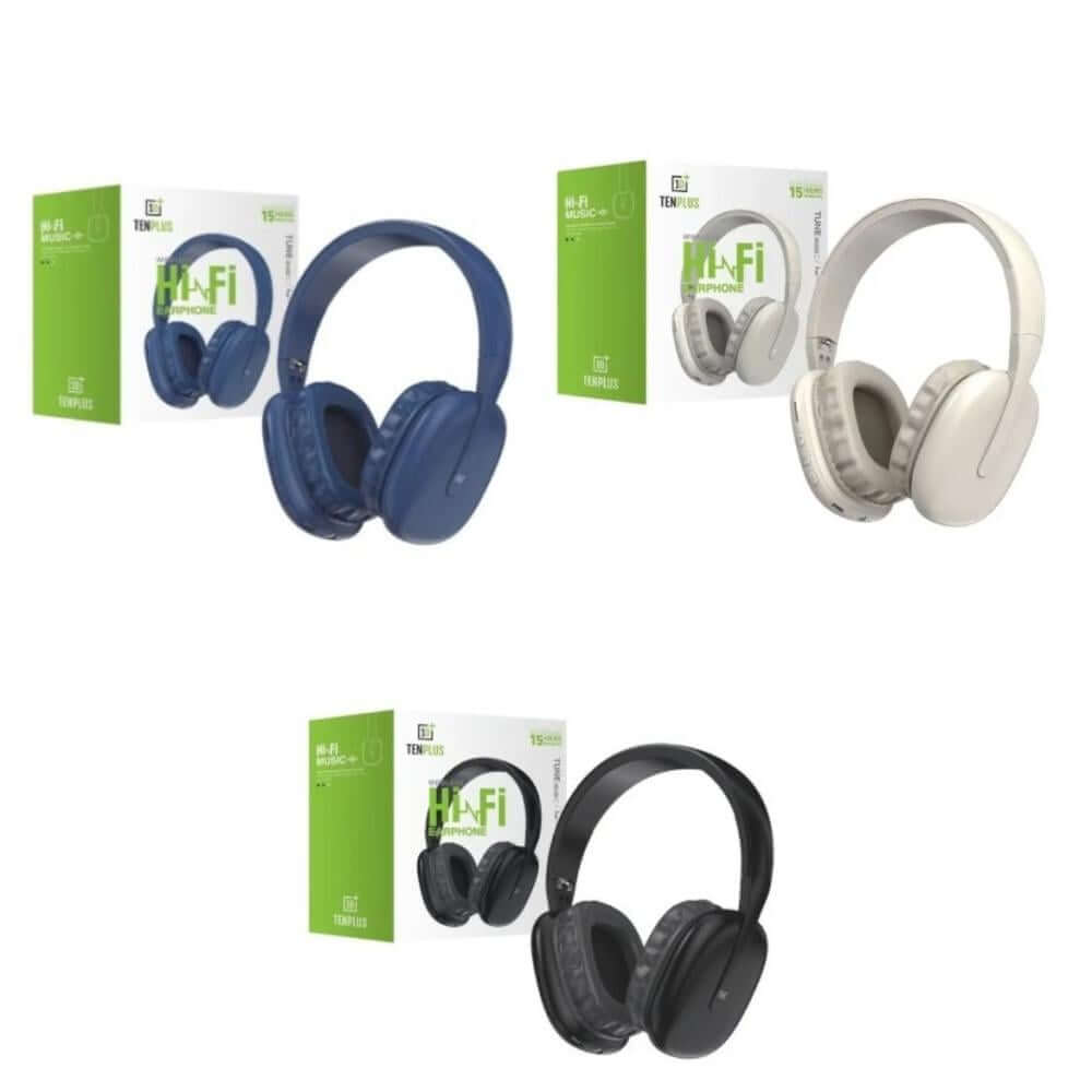 سماعة رأس لاسلكية ستيريو Tenplus – Bluetooth 5.3+EDR – حتى 40 ساعة تشغيل – درايفرز 40 مم – ضمان 24 شهر